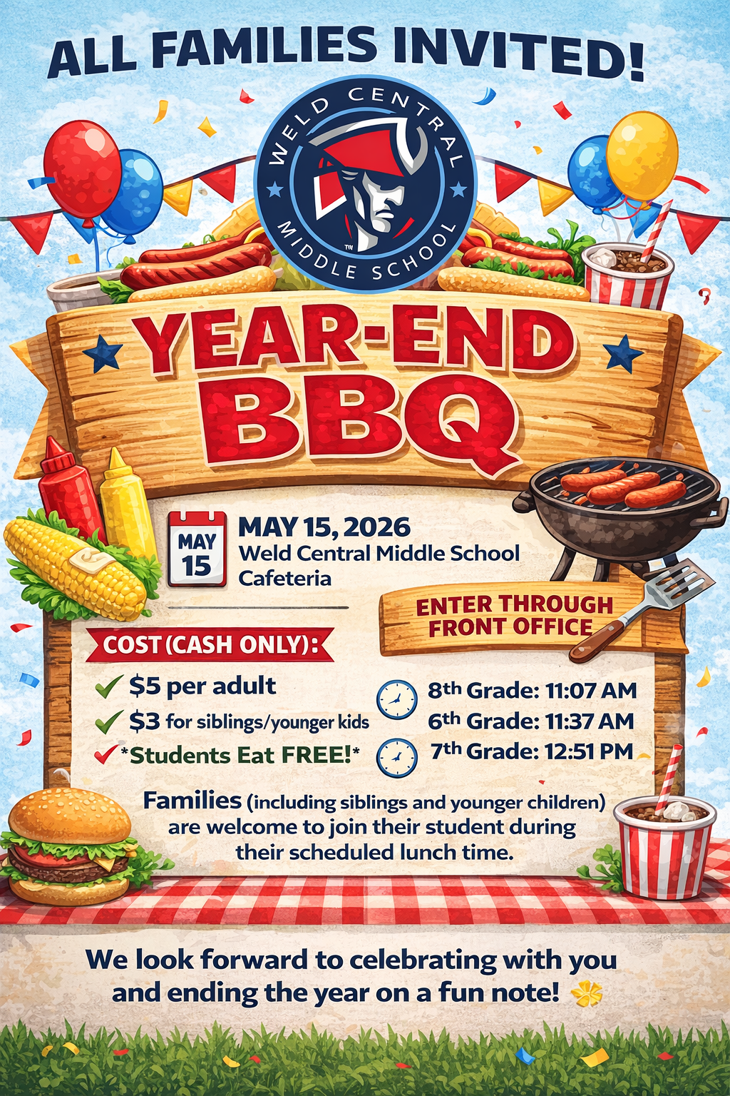 Year-End BBQ Invitation!We are excited to invite all families to our Year-End BBQ as we celebrate a great school year!Date: May 15, 2026 Location: Weld Central Middle School Cafeteria Entry: Please...